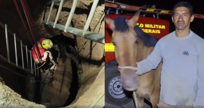 de um cavalo que caiu em uma fossa desativada de aproximadamente seis metros de profundidade, na cidade de Cristália, localizada no Norte de Minas, a cerca de 110 km do posto avançado da corporação.