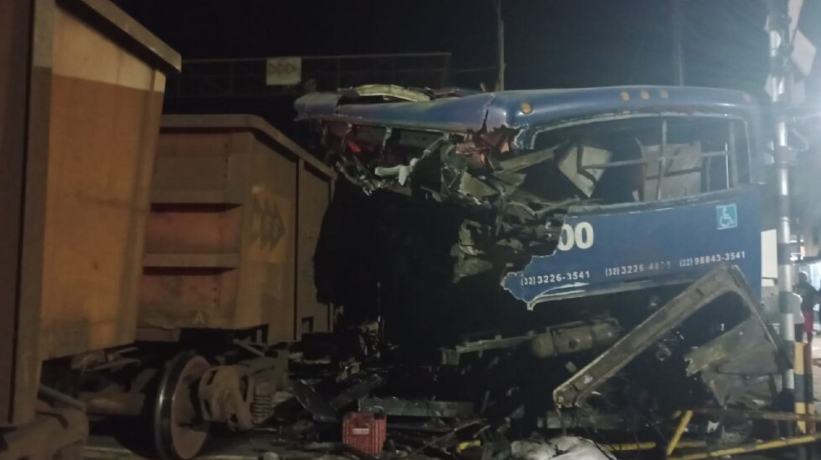 Ônibus para com defeito em cima de linha férrea e é atropelado por trem em MG