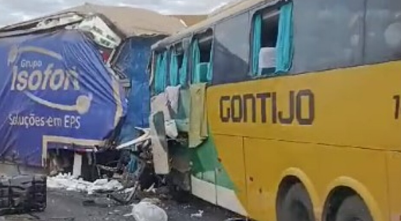 Vídeo: batida de frente entre carreta e ônibus na BR-116 deixa mortos e feridos em Minas