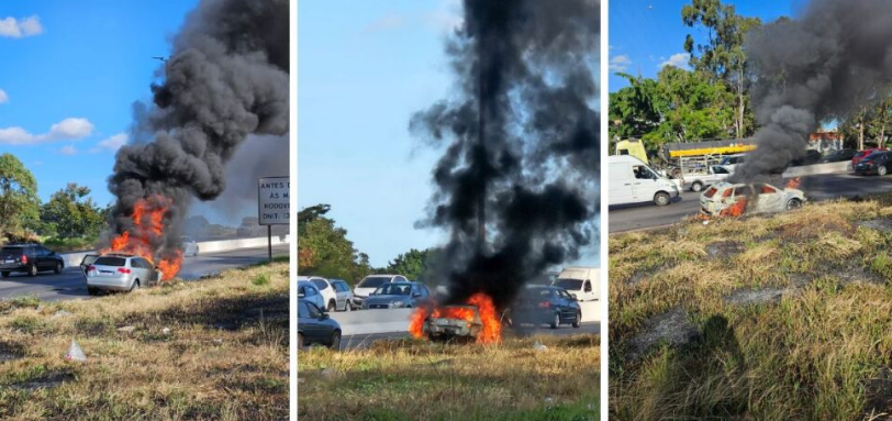 Veículo pega fogo e fica completamente destruído no Jardim Alvorada, em BH