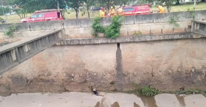 Homem cai de altura de oito metros no Ribeirão Arrudas, em BH