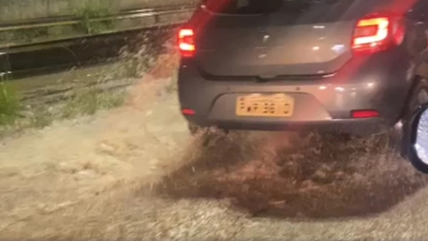 Vídeo: chuva forte em BH causa alagamento em trecho da Via Expressa