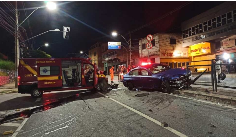 BMW bate em ambulância na av. Raja Gabáglia, na região Centro-Sul de BH, e interdita faixa