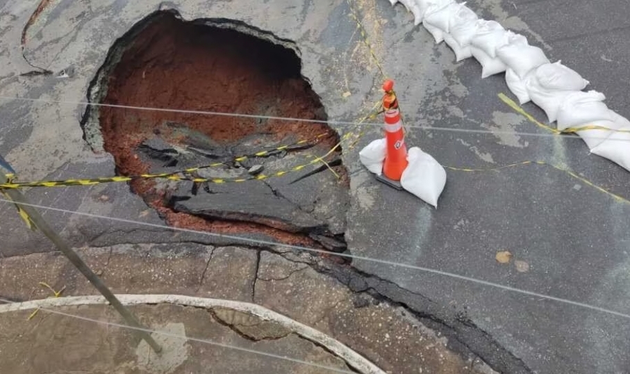 Chuva causa cratera em avenida na Grande BH e preocupa moradores