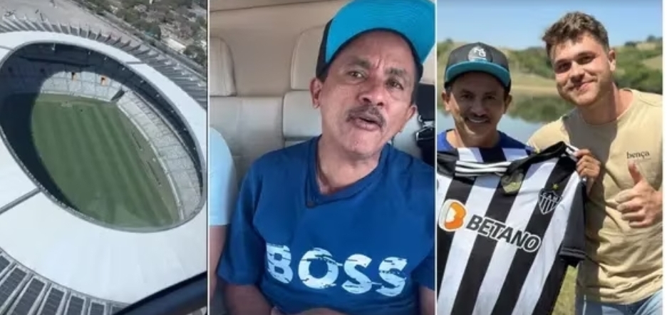 Em visita a BH, Manoel Gomes é presenteado com camisa do Atlético e caneta preta: ‘Aqui é Galo’
