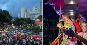 Chuva não desanima foliões durante cortejo da Banda Mole em BH