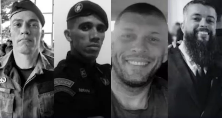 Os quatro policiais mortos são Marcus Vinícius Cardoso de Carvalho, de 51 anos; Rodrigo Velloso Cabral, de 34; Cleiton Serafim Gonçalves, de 42; e Heber Carvalho da Fonseca, de 39.
