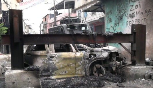 em um dos principais acessos da comunidade, horas após tiroteio.