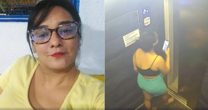Imagens mostram Daiane indo até a portaria e, minutos depois, retornando ao elevador.